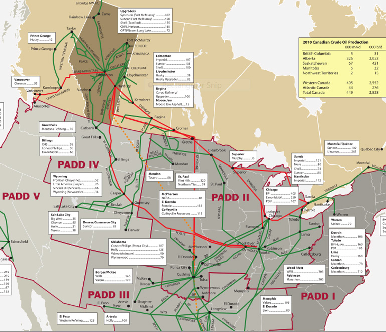 Pipelines move 95 per cent of all Canada's natural gas and crude oil. Made up of some 540,000 kilometres of pipeline, Canada's pipeline network spans the country from west to east and north to south. There are more than 350,000 kilometres of pipeline operating in Alberta. With high activity levels and record investment in conventional oil and gas exploration, coalbed methane (CBM) drilling, and especially the oil sands, industry experts predict that Canadian pipeliners will have to rapidly expand capacity in the years to come to be able to transport these products to markets in Canada, the U.S., and beyond.